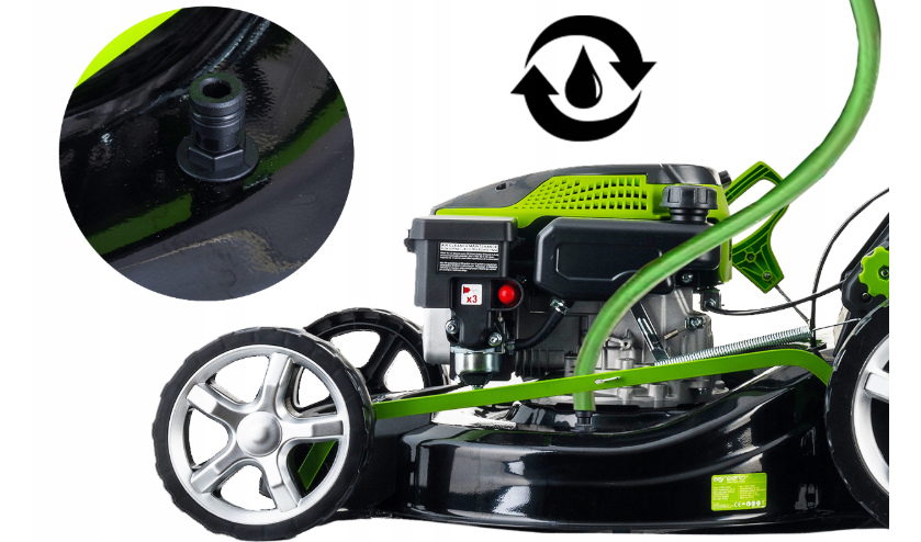 Kosiarka wyposażona w funkcję wyrzutu bocznego – idealna do koszenia dużych powierzchni bez konieczności opróżniania kosza.