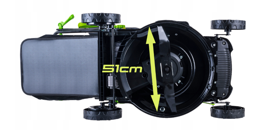 Dzięki wyrzutowi na bok trawa jest rozrzucana równomiernie na powierzchnię, co pozwala pracować szybciej i bez przerw. Świetnie sprawdza się na mniej zadbanych terenach lub podczas koszenia wysokiej trawy.