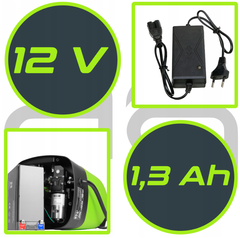 - Akumulator: 12 V – 1.3AH
