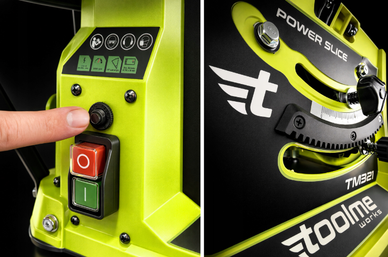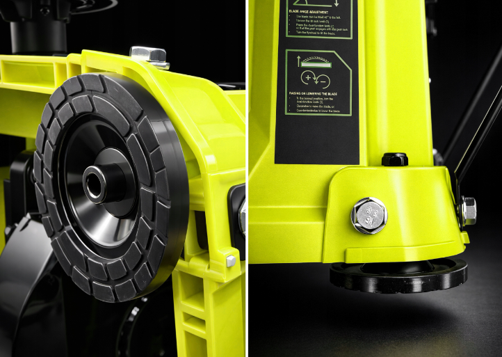 - Regulacja głębokości cięcia Piła stołowa oferuje precyzyjną regulację głębokości cięcia, która – podobnie jak regulacja kąta nachylenia tarczy – realizowana jest za pomocą tego samego ergonomicznego koła sterującego.