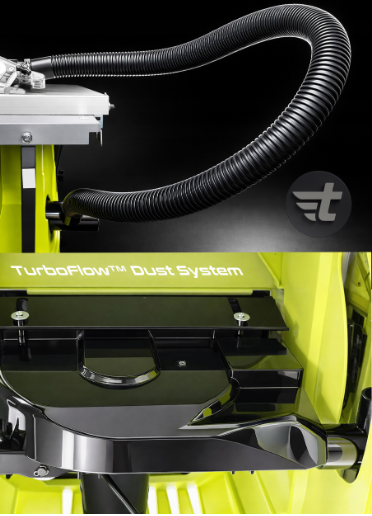 - Odciąg PYŁOWY I WIUROWY Piła stołowa została wyposażona w skuteczny system odciągu pyłu i trocin, który znacząco poprawia komfort i bezpieczeństwo pracy. Efektywne odprowadzanie trocin i pyłu ogranicza ich unoszenie się w powietrzu, co przekłada się na lepszą widoczność linii cięcia oraz zdrowsze warunki pracy.