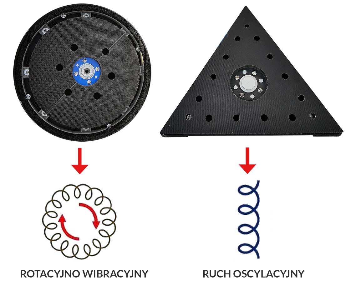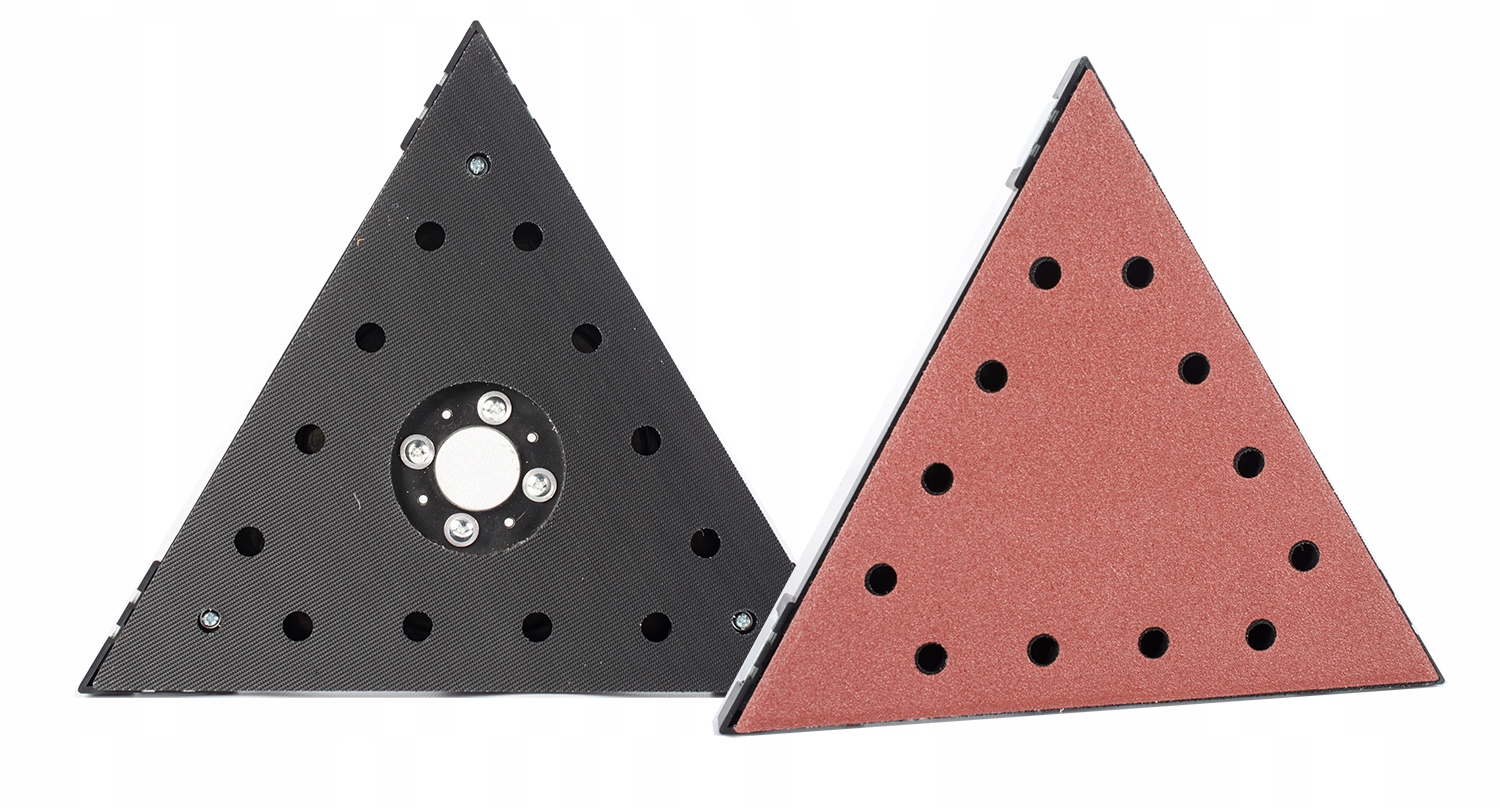 - W zestawie dwie głowice szlifujące – okrągła oraz trójkątna dzięki czemu mamy możliwość montażu krążków ściernych o kształcie okrągłym lub trójkątnym.