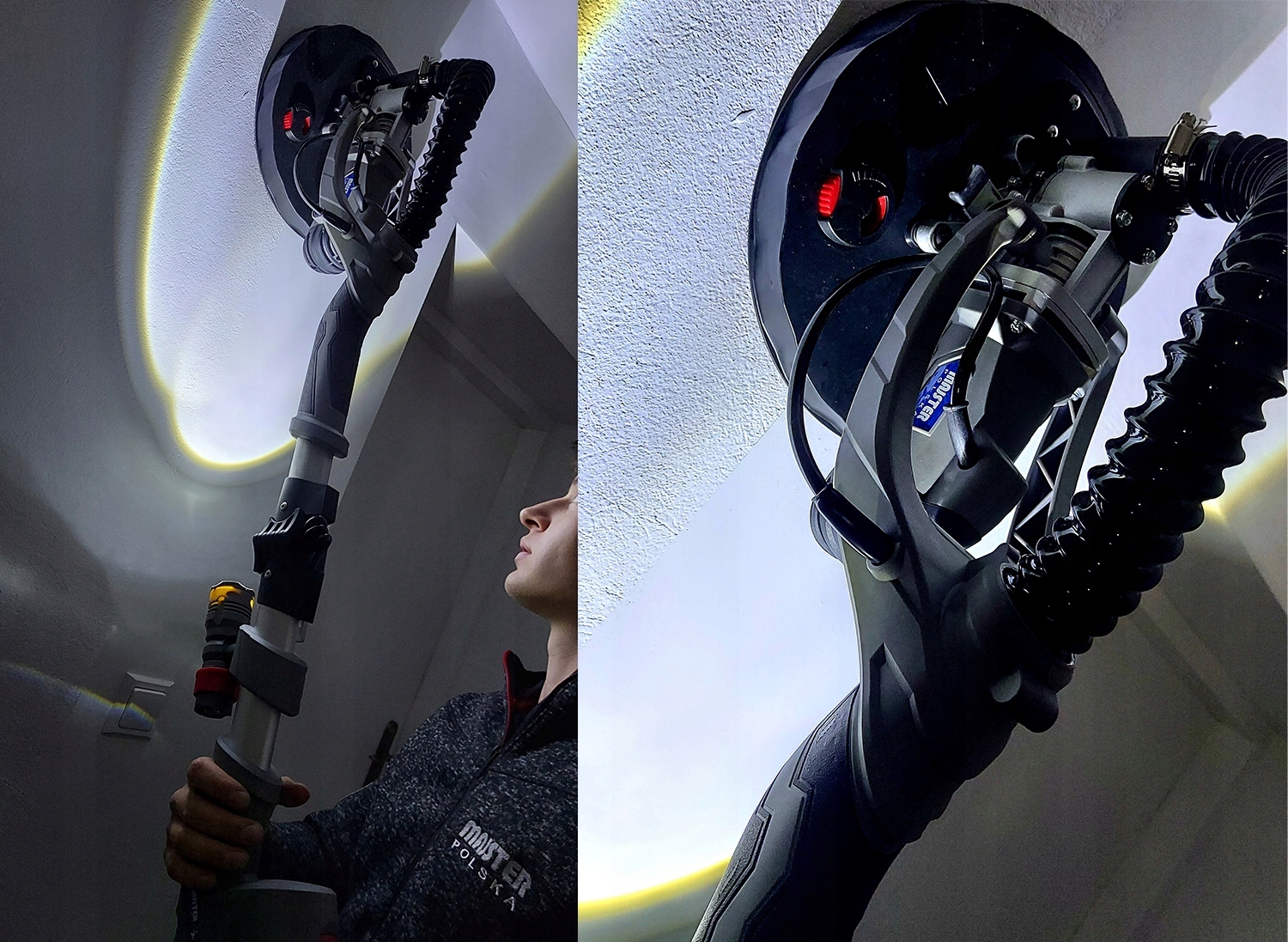 - Szlifierka do gipsu jest idealnym urządzeniem do szlifowania powierzchni trudno dostępnych nawet na dużych wysokościach.
