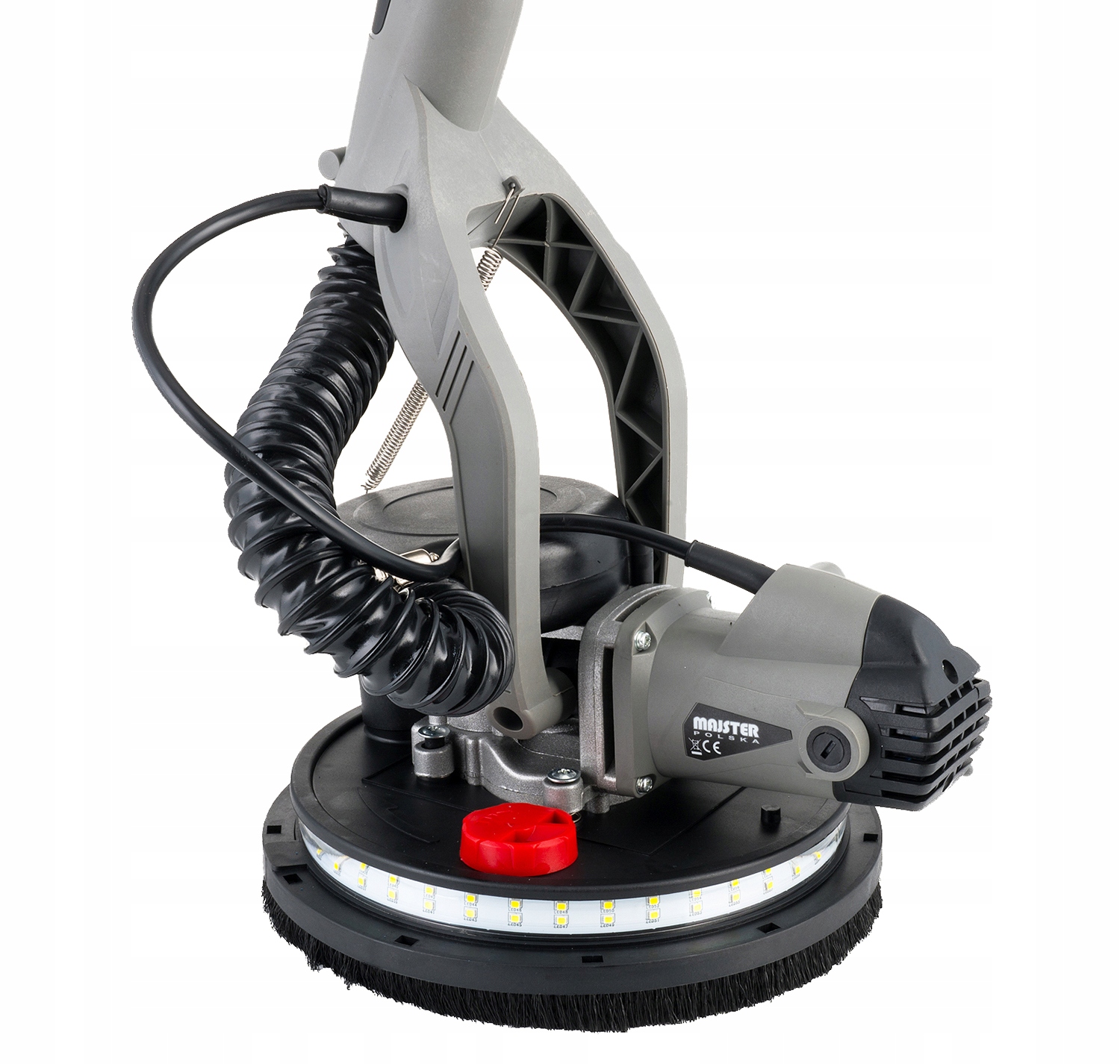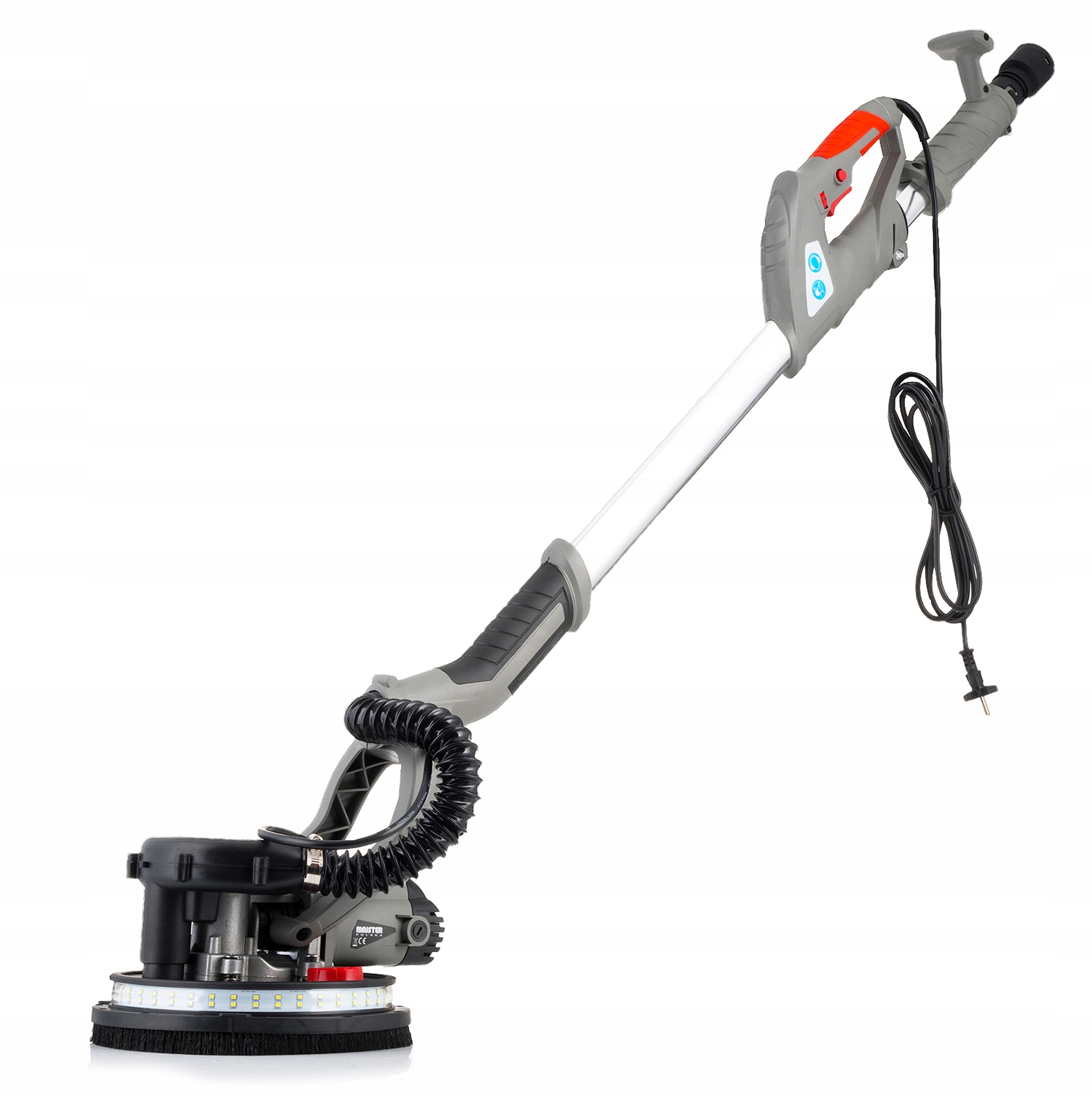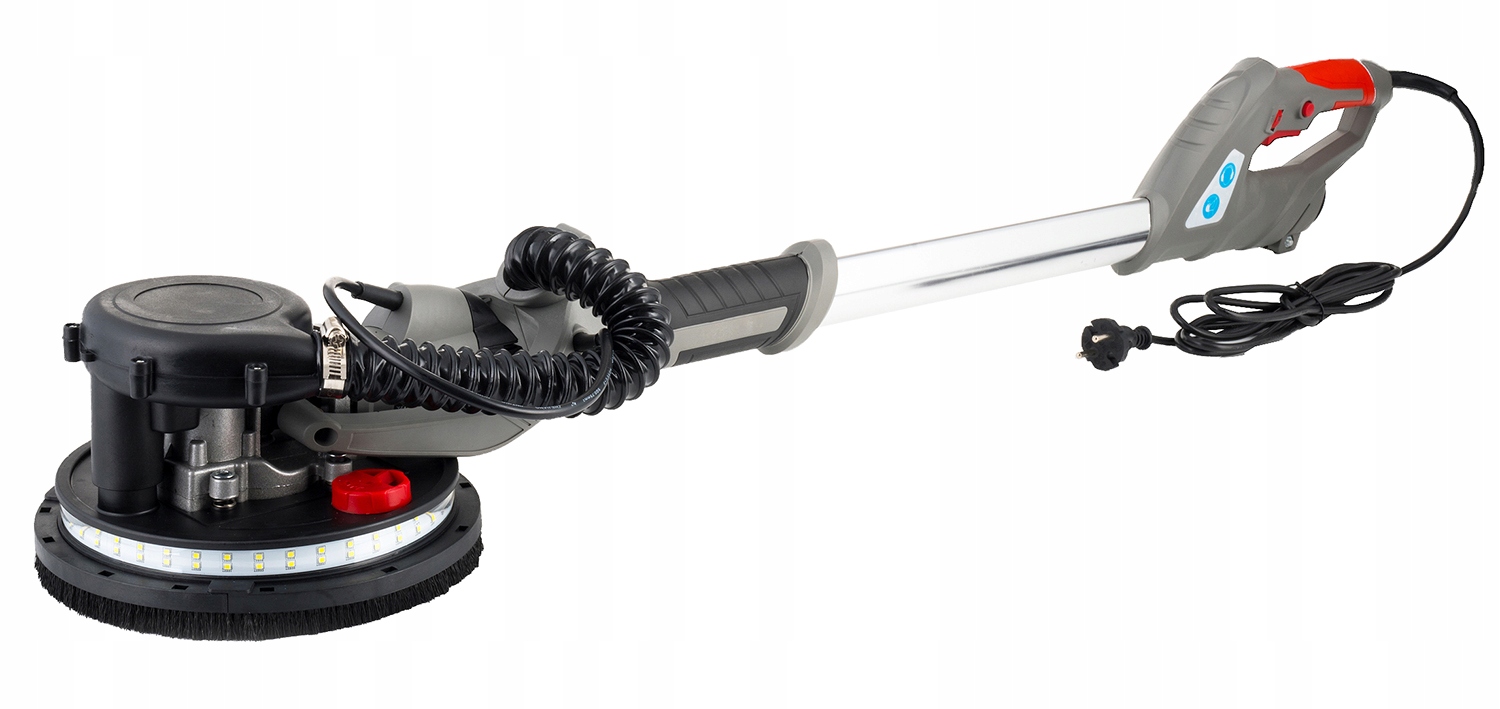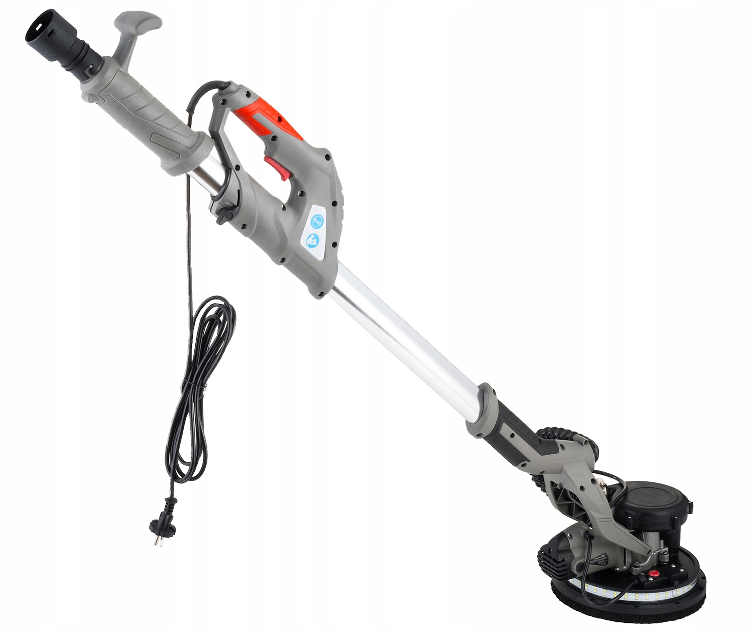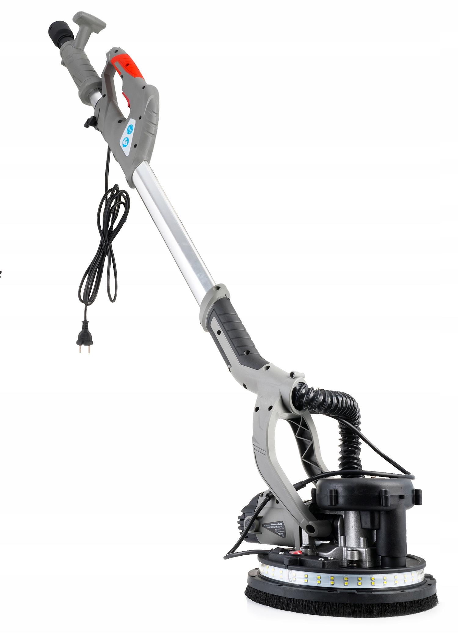 - Urządzenie posiada teleskopowy uchwyt, dzięki któremu bez problemu możemy szlifować nawet w wysokich pomieszczeniach. Zakres regulacji długości całkowitej 150-220cm